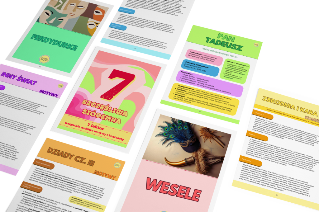 💡 Szczęśliwa siódemka zawiera wszystkie możliwe motywy, dzięki czemu napiszesz rozprawkę na każdy temat!